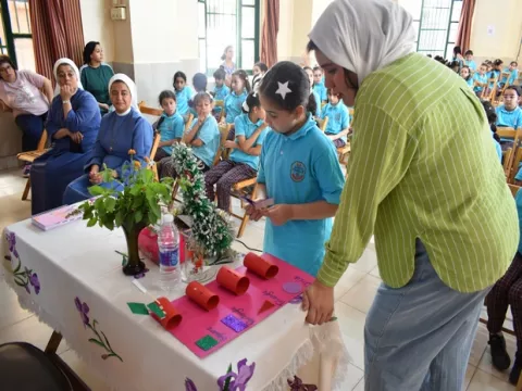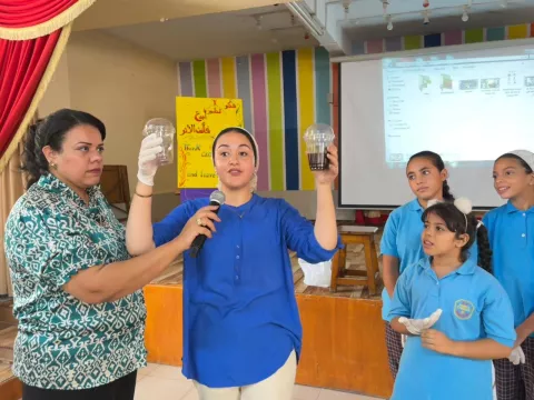 مشروع الصف الخامس الابتدائي تحت شعار :انقذها بالتدوير... شارك في التغيير