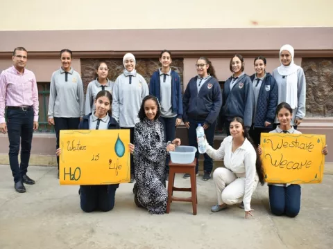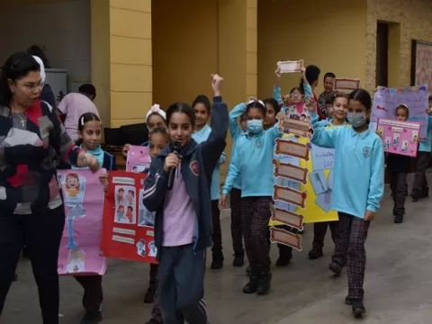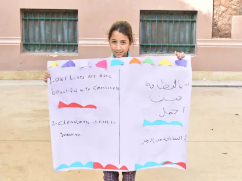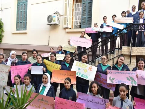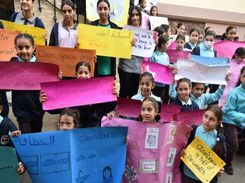 نظافة مدرستنا عنوان لجمالنا، فلنكن شركاء في الحفاظ على بيئتنا نظيفة وجميلة