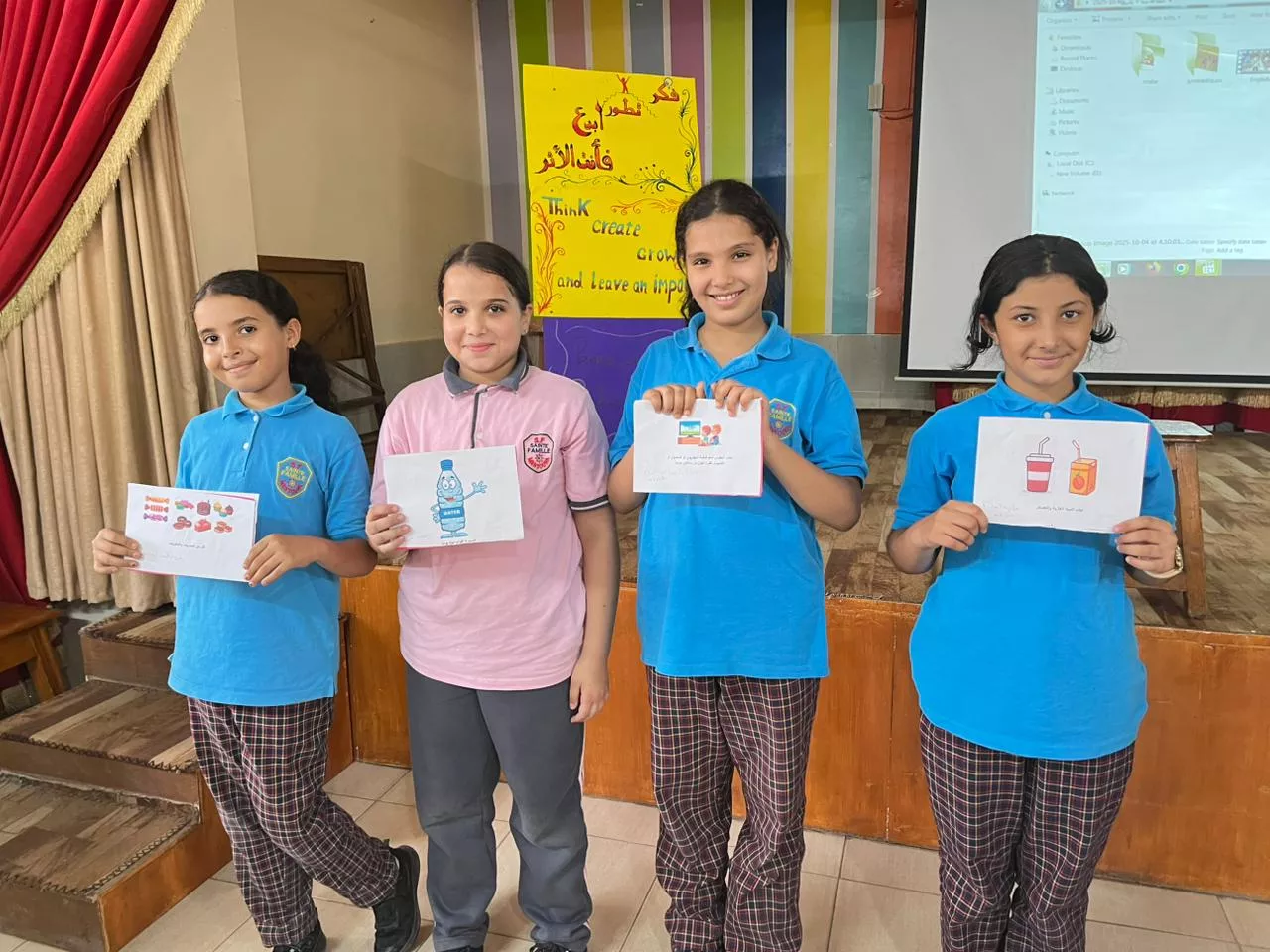 مشروع الصف الخامس الابتدائي تحت شعار :انقذها بالتدوير... شارك في التغيير