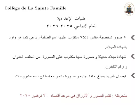 المشروع التربوي لمدرسة العائلة المقدسة بالمنصورة