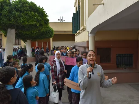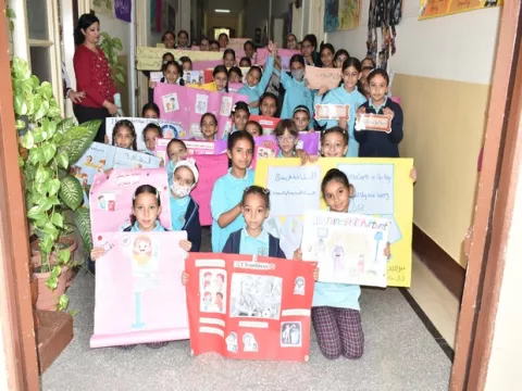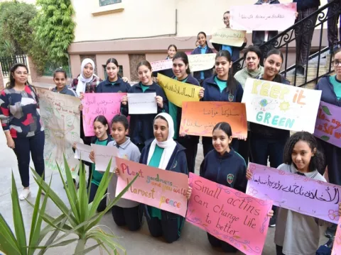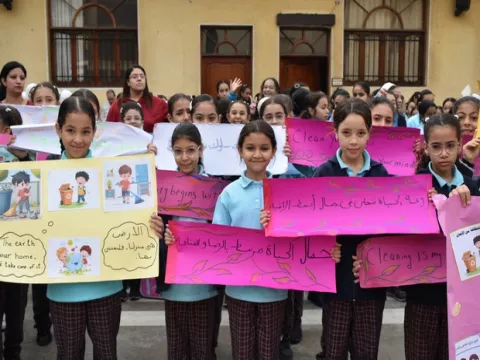 نظافة مدرستنا عنوان لجمالنا، فلنكن شركاء في الحفاظ على بيئتنا نظيفة وجميلة