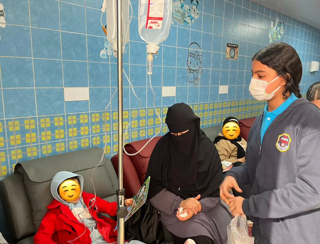 قامت طالبات الصف الرابع والسادس الابتدائي بتقديم الدعم لأطفال مستشفى الأورام بهدف نشر الفرح وتقديم المساندة لهم.