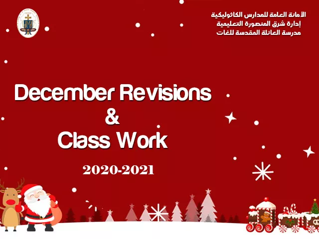 December Revisions & Class work 2020/2021 1st Primary 2nd Primary 3rd Primary 4th Primary 5th Primary 6th Primary 1st Prep 2nd Prep 3rd Prep
